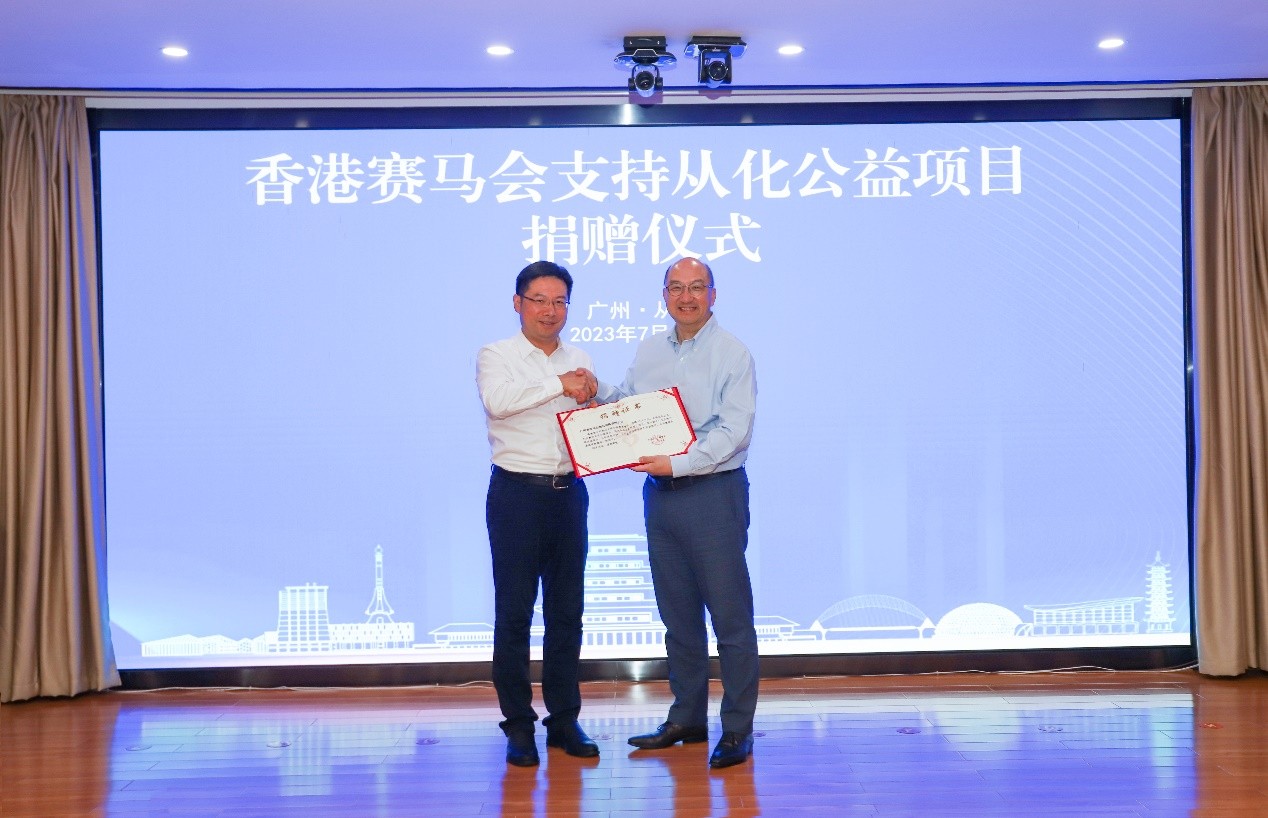 7月14日,香港赛马会“2022-2023年度从化公益项目计划捐赠仪式”在广州市从化区人民政府举行。这次捐赠仪式是香港赛马会长期支持从化区发展的重要举措之一,旨在促进从化区的基础设施建设、提升医疗卫生健康服务、推广马文化及马产业、支持体艺教育,助力当地社会社区民生及经济发展。