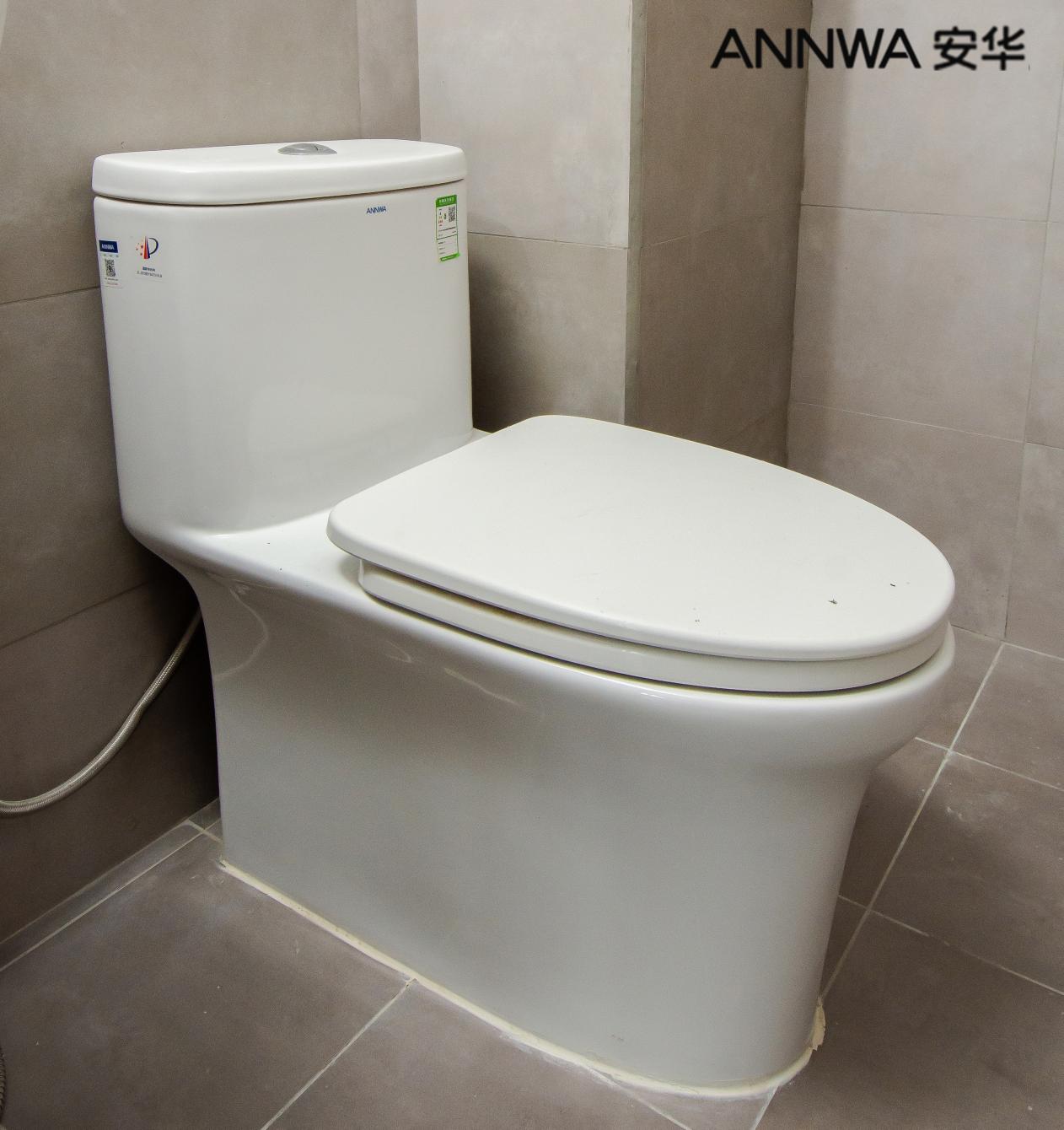 在卫浴产品上,臻选安华高品质坐便器,其用水量低于0.4升,高效节水,环保节能。更令人放心的是,其搭载喷射虹吸式双档冲水系统,冲力强劲,排污顺畅,有效避免了挂污的问题。还有PP缓冲盖板设计,将噪音降到极致,给人静谧舒心的如厕体验。