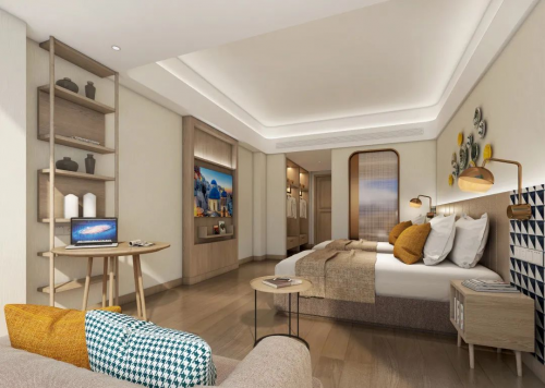 欧暇·地中海酒店(漳州长泰凯悦广场店)投资人吴钦彬表示,欧暇·地中海独具特色地将肌理漆、文化石、原木雕等材料和大量的现代风格融入设计,同时又植入地中海生活场景中的陶罐、琉璃瓶、藤编、橄榄等元素,配合柔和又明亮的色调风格,营造出独树一帜的地中海休闲度假体验,这种多维度的设计风格是其他品牌很难去模仿复刻的,当然也能在众多审美趋同的酒店中脱颖而出,为顾客留下深刻的印象。