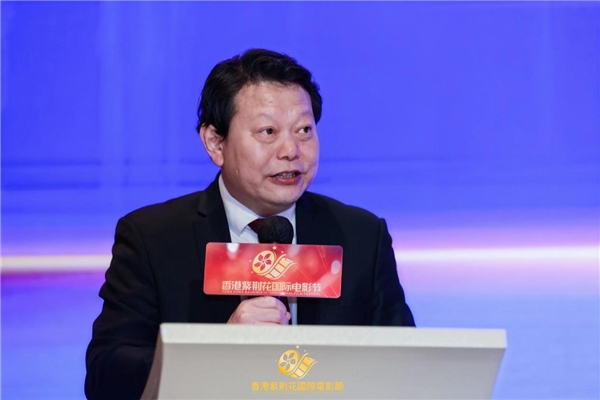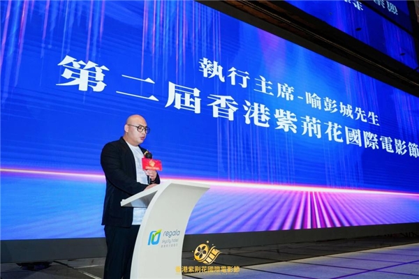 香港紫荆花国际电影节秘书长赵洪伟先生上台跟大家分享了筹备“香港紫荆花国际电影节”的心路历程。香港紫荆花国际电影节,是经由香港特别行政区政府批准的、每年举办一届的中国新主流电影主题盛典。电影节组委会聘请电影界专家组成评委会,以专业、公开、公正评选与颁奖形式,对表现优异的电影工作者给予表彰,让优秀人才脱颖而出,为观众展现更多精彩纷呈的电影佳作。在总结了第一届电影节经验的基础上,此次电影节更加结合电影业发展实际,更加关注共融、共情、共鸣的新类型、新力量优质电影,更多支持国内外优秀的电影从业者,旨在通过电影节的举办,让更多优秀的电影从业人员脱颖而出,助力中国电影事业健康优质发展。