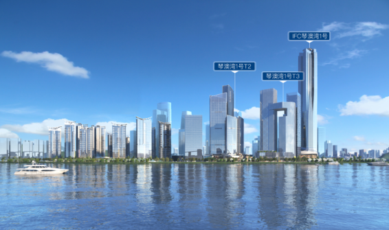 琴澳湾1号“全新一代居住形态”:集办公、住宅、商业于一体的高端综合体,包含约200米高的办公塔楼、约122米住宅塔楼以及4层商业裙楼。