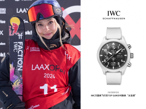 比赛期间,谷爱凌佩戴了IWC万国表飞行员TOP GUN计时腕表“太浩湖”(型号:IW389105)。采用44.5毫米白色陶瓷表壳,漆黑表盘搭配Super-LumiNova®夜光涂层的黑色指针。白色陶瓷表壳质地坚硬,具备超强耐刮特性,并搭载IWC万国表自制69380型计时机芯,采用导柱轮设计,坚固耐用、精准可靠。计时按钮和表冠以精钢制成,表背采用钛金属材质,令整体设计格外耀目。
