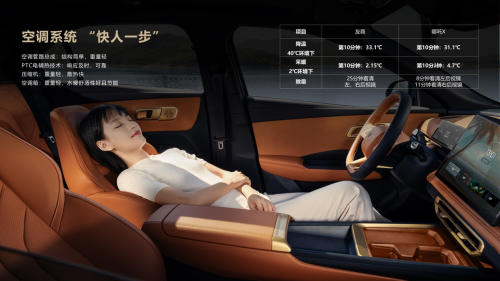 哪吒X还配有更高效的空调,在40度高温下,10分钟即可享受清凉体验;在零下10摄氏度环境下,10分钟即可达到23度,瞬间温暖。寒冬腊月,能在手机APP上提前远程打开空调,上车即可享受暖风,告别冰冷的方向盘。