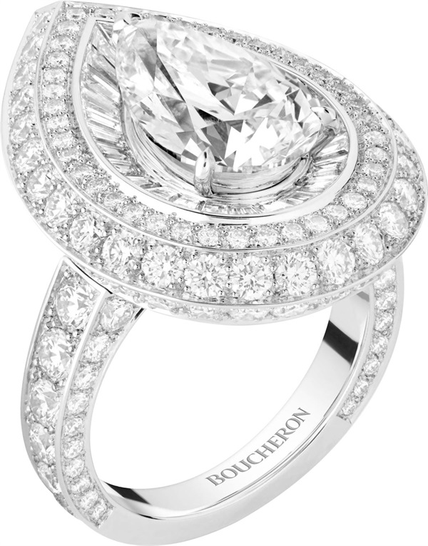 为此,品牌创意总监Claire Choisne 从盛典礼服中撷取灵感,对其进行大胆而前所未有的风格诠释。盛典礼服自有的矛盾性深深吸引着这位创意总监。乍一看,礼服给人一种正式、刻板的印象。但如果逐件细看,便会留意到一系列精美绝伦的装饰。在设计本系列的24件高级珠宝作品时,Boucheron宝诗龙沿用了此种理念。Claire Choisne继续说道:“我决定对这些象征权力的元素进行解构和重新演绎,确保其适用于高级珠宝设计。这一系列就如同一个珍贵的百宝箱,其中各款作品采用不同设计元素,提供多种佩戴方式,令佩戴者可以自由打造独特型格。”