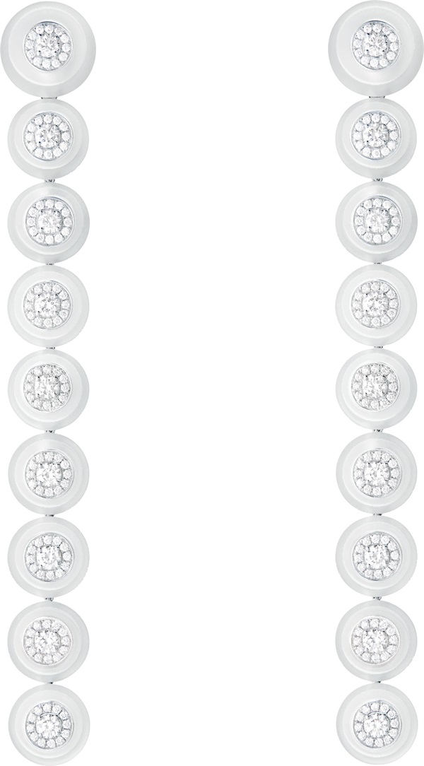 犹如时尚型格的点睛之笔,这组纽扣造型珠宝由品牌创意总监Claire Choisne精心设计,共包括15枚镶嵌钻石和水晶的白金纽扣,演绎优雅摩登美学。这组作品既可作为头饰,亦可穿引于真实钮孔中,或点缀在领带上。每枚纽扣可单独佩戴,或自由叠搭,释放无尽的造型可能。
