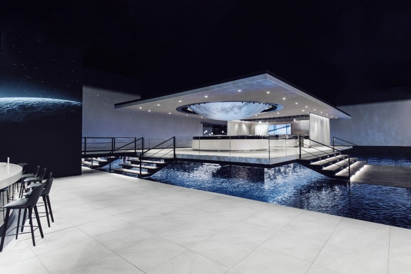 为了彰显葡萄牙系列独具一格的经典特色,IWC万国表在“钟表与奇迹”日内瓦高级钟表展上的展厅设计以现代主义建筑为灵感。整个展厅采用通透的开放式设计,其中一些元素与IWC万国表沙夫豪森制表中心的建筑设计一脉相承。丰富的水元素呼应了150多年前IWC万国表在莱茵河畔创立时的制表梦想。在一天中的不同时段,展厅分别呈现全新表款的四种全新色彩:地平线蓝、沙丘金、曜石黑和银月白,以此营造出别具一格的氛围,为参观者呈现无与伦比的独特体验。全新葡萄牙系列腕表作品陈列在一个大型圆形展柜中,展柜上方悬挂着一轮熠熠闪光的巨大银月,呼应IWC万国表的日历与月相显示。从缤纷色彩到象征莱茵河的流水再到银月当空,展厅的每一个元素都寓意着向永恒致敬。