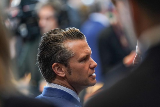 2月13日,在比利时布鲁塞尔北约总部,美国国防部长赫格塞思出席“乌克兰防务联络组织”会议。新华社记者彭子洋摄