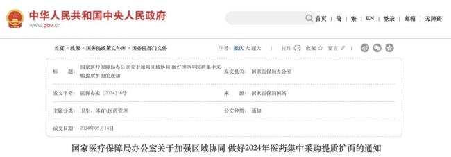 国家医保局在2024年发布的《通知》中明确表态,各省份可以根据本地区药品耗材费用支出的特征和结构、基金运行情况,以及医药领域腐败问题集中整治工作的形势和需要,有针对性开展本省份带量采购工作。