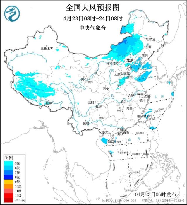 23-24日,内蒙古大部、华北北部和西部、黄淮及东北地区等地有4~6级风、阵风7~9级,内蒙古东部局地阵风可达10级以上;受蒙古气旋东移影响,内蒙古中东部、河北中北部、辽宁西部等地部分地区有扬沙或浮尘天气。