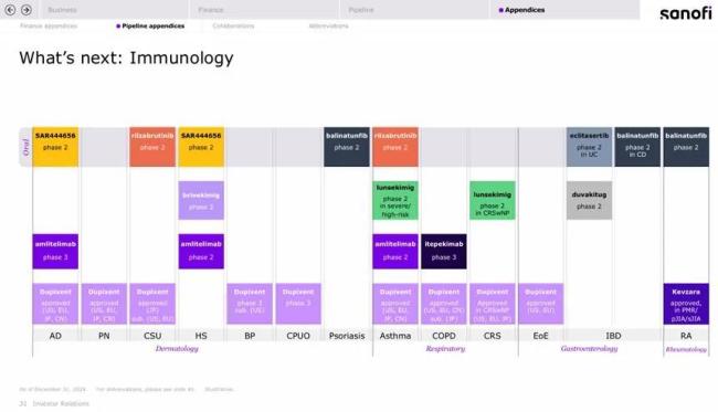 在竞争激烈的生物制药领域,维持领先地位远比崛起更为艰难。“不能把鸡蛋都放在一个篮子里”,赛诺菲深谙其理。在巩固单品优势的同时,赛诺菲通过内外创新积极构建多层次、差异化的免疫管线,在这一高增长赛道上持续狂奔。
