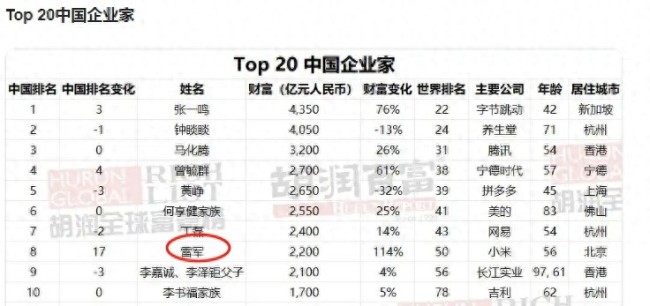 与此同时,雷军身家超钟睒睒登顶中国首富的消息一度成为热点。2月24日早盘,小米股价一度涨超4%,触及58.7港元/股,刷新历史纪录。据报道,雷军的总财富估值接近4400亿元人民币,其对小米持股约24.2%,仅此一项就为其带来了3412亿元人民币的财富。此外,他在“金山系”中的投资也为他贡献了约441亿元人民币的资产财富值。他还通过顺为资本押中了字节跳动、宇树科技等独角兽,并涉足蔚来汽车、人人车、小鹏汽车等领域,这些投资大概能为他带来约500亿元人民币的资产财富值。