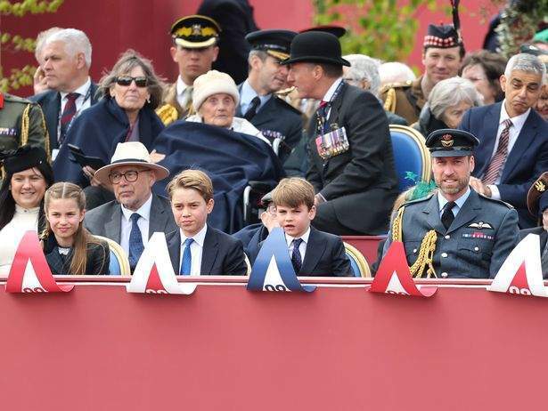 上午的伦敦阅兵式上,红箭飞行队的特技表演拉开了序幕,演员蒂莫西·斯波朗诵了丘吉尔1945年胜利演说的选段。威廉王子夫妇携乔治、夏洛特与路易三位孩子现身观礼,他们与查尔斯国王夫妇同坐主席台时收获了民众的热烈掌声。当军方方阵沿林荫大道行进时,天空新闻镜头捕捉到兄弟俩的逗趣互动:11岁的乔治伸手整理被风吹乱的刘海,7岁的路易立即浮夸模仿哥哥的动作,这一幕引发了社交媒体上的热议。