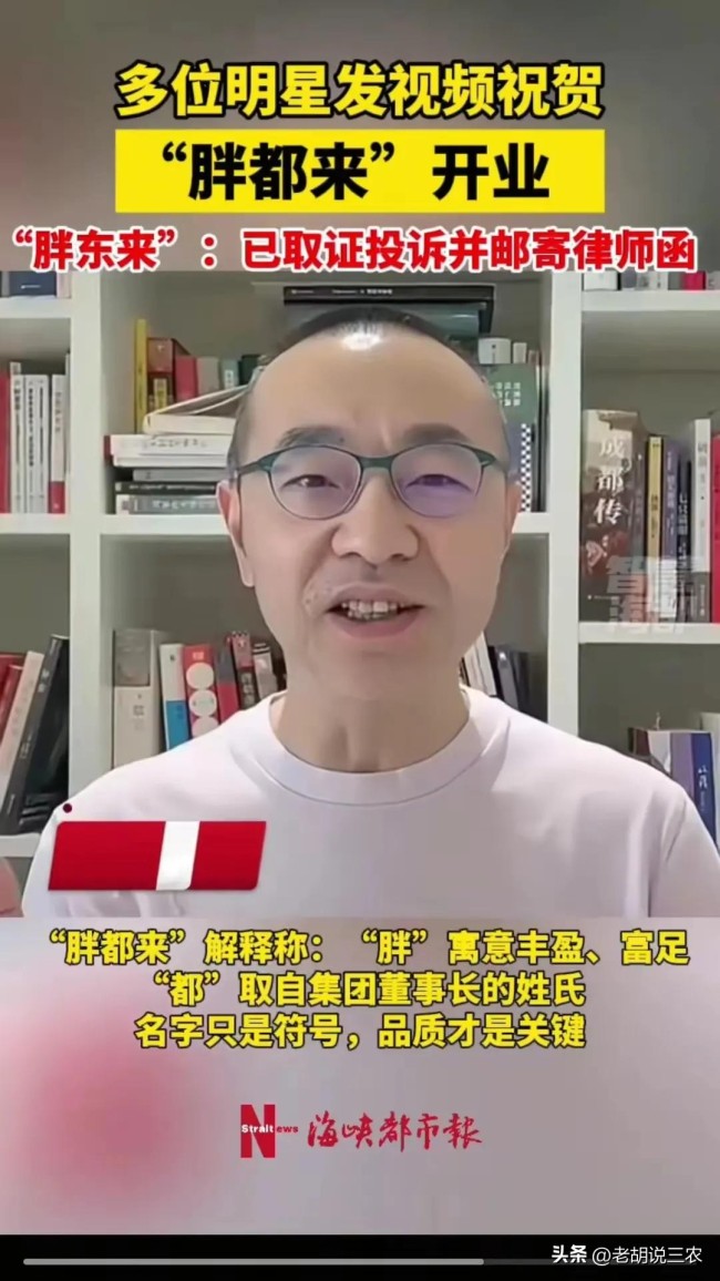 三德子赵亮发致歉声明 明星站台引争议!最近,商业圈里发生了一件有趣的事情。浙江嘉兴一家名为“胖都来”的商场刚开业就遭到网友们的吐槽。这家商场的名字和河南的“胖东来”极为相似,连LOGO设计也采用了红底白字,甚至连“不满意就退货”的口号都照搬过去。有网友调侃说:“这怕不是卖‘雷碧’和‘白事可乐’的高端超市?”