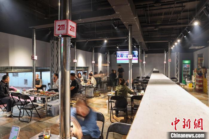 图为顾客在烤串。中新社记者 于海洋 摄