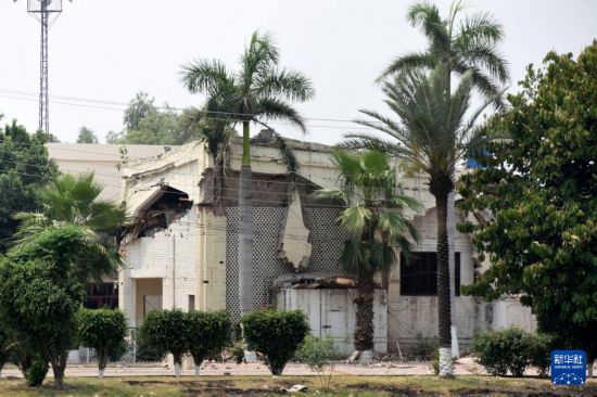 这是5月7日在巴基斯坦东部旁遮普省谢赫布拉地区穆里德盖镇拍摄的遭印度导弹破坏的建筑。新华社发(萨贾德摄)
