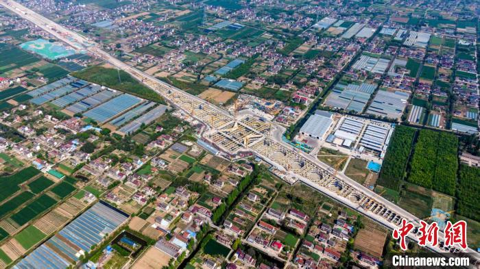 航拍新建上海至南京至合肥高铁海门北站的地下主体结构施工现场(资料图)。张乾兴 摄