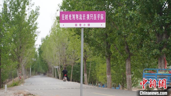 进入邓台村要经过一段乡间小路,道路两旁是树林和一望无际的蒜薹地,笔者到访时蒜薹正成熟。丽君小镇指示牌立在路旁,构成一幅“小村之恋”场景。王子怡 摄