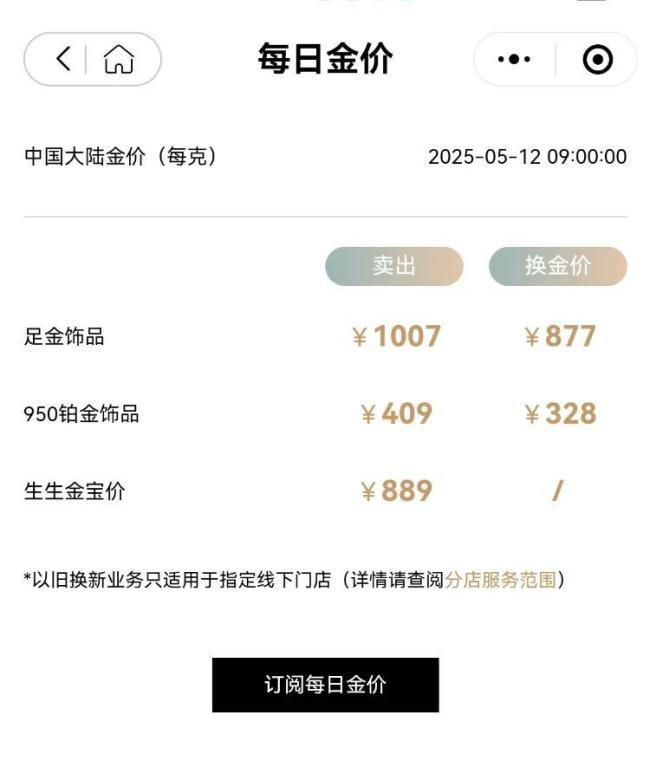 国内多家黄金珠宝品牌的首饰金价也发生了变动,多个品牌金饰价格跌回千元附近。周大福金饰价格为1008元/克,周生生金饰价格为1007元/克,潮宏基金饰价格为1008元/克,老庙黄金金饰价格(上海区域)为1000元/克,菜百首饰金饰价格为988元/克。