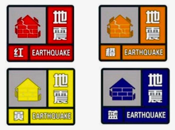 红、橙、黄、蓝四个地震预警级别。中国地震局 供图