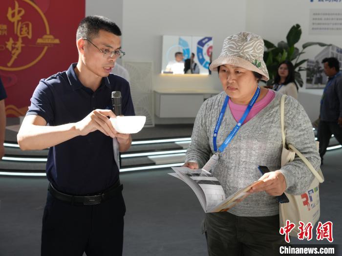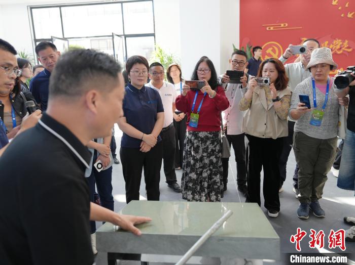 工作人员向东盟媒体代表展示“玉芯石”产品。记者 杨华峰 摄