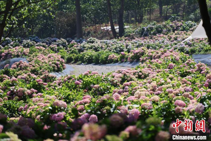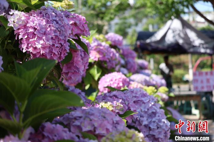 5月12日,贵州惠水,绽放的绣球花。刘美伶 摄