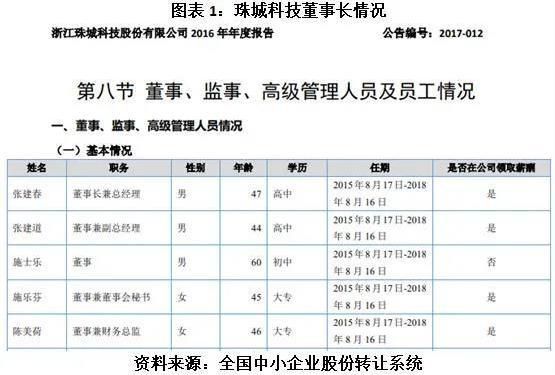 随着公司日益壮大,2015年,随着珠城有限变更为珠城科技,张建春一直担任公司董事长。施乐芬也一直担任公司董事,甚至在变更初期还担任了3年公司董事会秘书,成为张建春的左膀右臂。