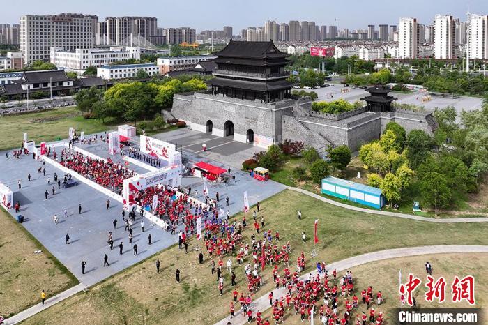 参赛队伍从淮安漕运门东广场出发。中新网记者 泱波 摄