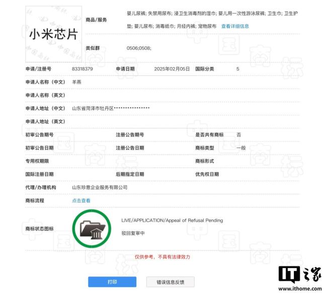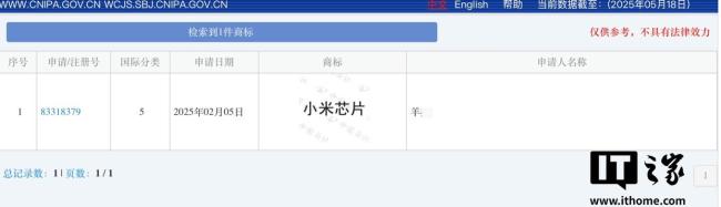 此外,今年2月,自然人羊某曾尝试申请注册“小米芯片”商标,分类为医药,但该申请已被国家知识产权局驳回。