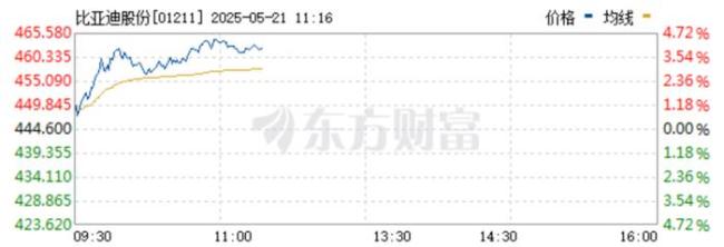 比亚迪A股股价创新高 市值突破1.22万亿!5月21日上午10:45左右,比亚迪A股股价上涨2.18%,达到每股403.41元,创下历史新高。公司总市值突破1.22万亿元,成交额达43.83亿元。港股方面,比亚迪股份股价也达到了460港元的新高,日内涨幅接近4%。