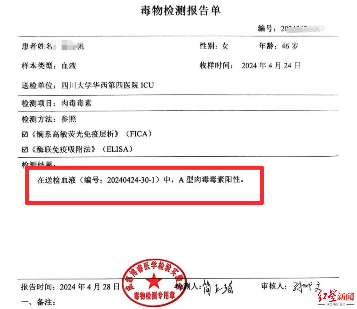 经检测,杨桃血液中A型肉毒毒素阳性,医院诊断为肉毒素中毒。此后,杨桃辗转多家医院,经过近一年的多次治疗,今年2月才基本康复出院。