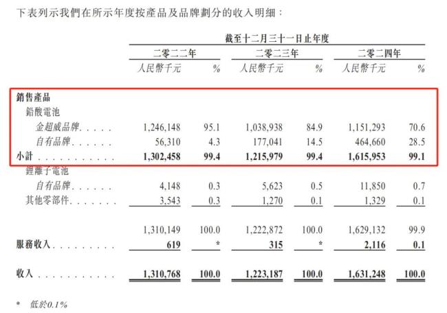 其业务核心,是通过分布在全国的900多家区域服务商以及超2万家合作门店销售产品,主要就是卖电池。2022年-2024年,公司超过99%的收入,来自销售电动车上最常用的铅酸电池。