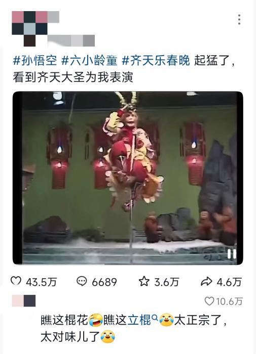 在网友考古的《齐天乐》晚会中,二十七岁的六小龄童腾挪闪转,金箍棒惊起满屏“爷青回”“泪目”。跨时空的联结,在短视频时代被无限放大。