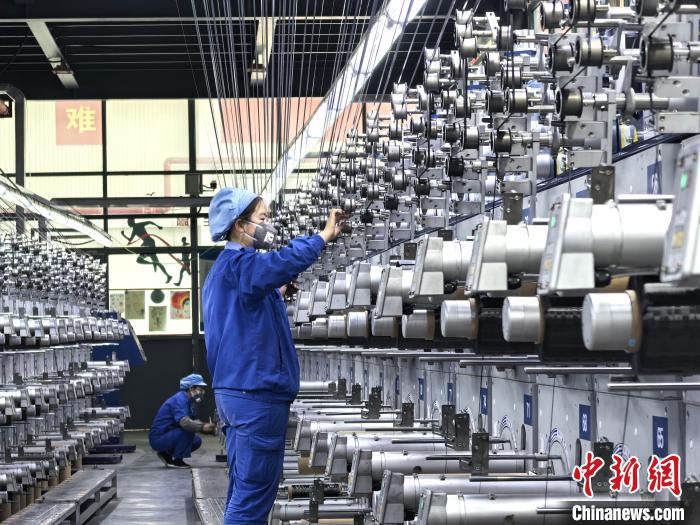图为5月22日,位于青海省西宁市的全球首个单体最大碳纤维生产基地生产车间,工人正在整理高性能碳纤维原丝。祁增蓓 摄