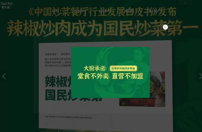 公开资料显示,“费大厨辣椒炒肉”是国内知名的湘菜连锁品牌,凭借“大厨现炒”“不做加盟”“拒绝外卖”等特点走向全国。2023年,费大厨卖出辣椒炒肉500多万份,总营收超10亿元。