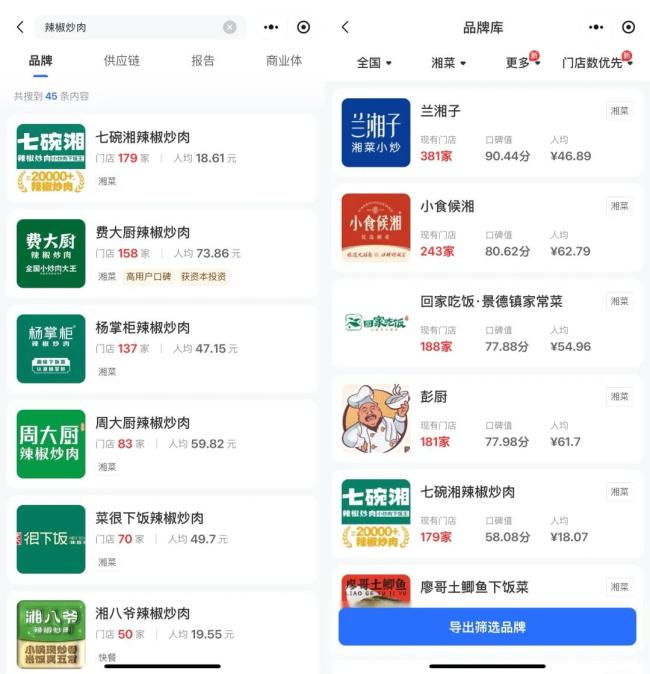 湘菜品牌正在批量占领北上广。窄门餐眼数据显示,湘菜品牌近一年新开门店23440家,净增长-7642家。但众多湘菜品牌高度依赖辣椒炒肉等单一爆品,核心菜品同质化程度远超川菜、粤菜等其他菜系。湘菜的确下饭、有锅气,但若缺乏差异化创新,消费者也很容易产生审美疲劳。