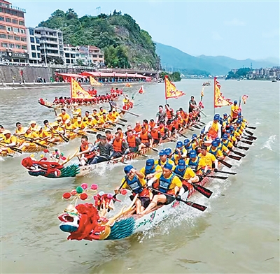 “旌鼓龙舟渡 非遗零距离”龙舟竞渡赛现场。