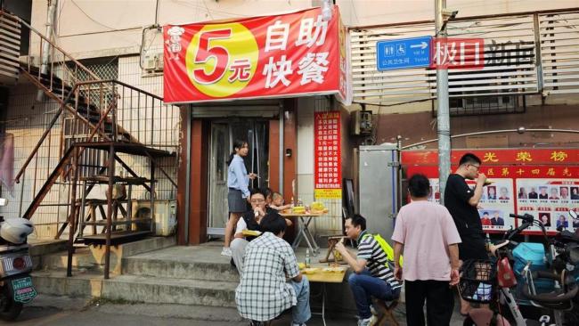 下午五点左右,孟先生将七样菜品摆上餐柜,包括西红柿炒鸡蛋、炒千张等。这时,店里陆续迎来顾客,以年轻群体为主,有些是附近居住的打工者,还有慕名而来的在校大学生。一些顾客还是孟先生的粉丝,专程过来吃饭合影。孟先生提到,小店没火之前晚上九点就可以关门,但现在受到的关注很高,很多粉丝前来打卡,有时要忙到深夜十二点才能休息。