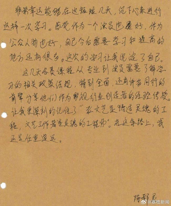 5月30日,“陈都灵杨超越范丞丞广电培训笔记”的词条冲上热搜。此前,5月18日至21日,2025年青年演员和经纪人培训班(第二期)在广电总局研修学院顺义校区举办。这是广电总局组织的总第6期青年演员和经纪人培训班,共有34名青年演员和23名经纪人参加了为期四天的封闭学习。