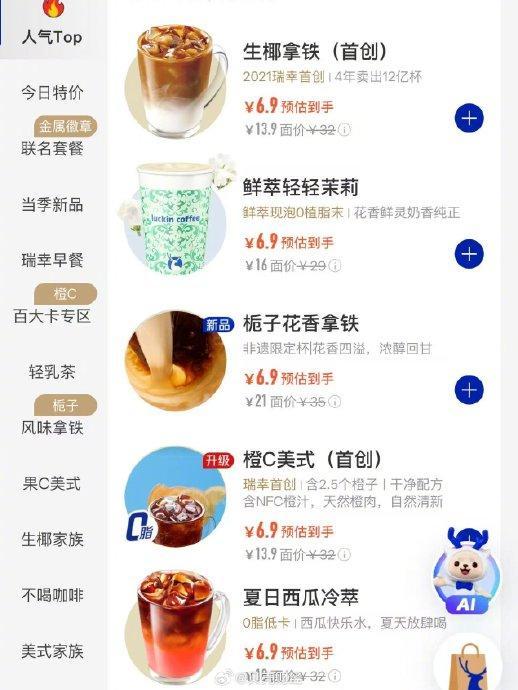 瑞幸咖啡降价 价格战再升级!5月30日,消费者发现瑞幸咖啡多款饮品价格降至6.9元。此前,瑞幸咖啡的最低价通常是9.9元一杯。这次降价可能与近期外卖平台的价格战有关。本季度,奶茶和咖啡行业的价格竞争尤为激烈,瑞幸的主要竞争对手之一库迪咖啡将单品价格压低至3.9元和4.9元一杯。据饿了么数据显示,在“淘宝闪购”全量上线24小时内,库迪咖啡销量迅速上升至平台咖啡类目第一,订单量较平时增长近10倍。目前尚不清楚瑞幸咖啡此次降价是否直接与此相关。