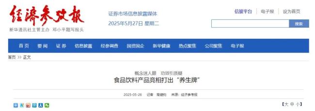 如,经济参考报在5月25日的报道中就表示,“中药茶饮”“低GI食品”“超级食物”……随着健康观念和养生理念深入人心,体重管理上升为“国家健康行动”,各类功能性食品饮料受到消费者追捧。然而,市场上层出不穷的健康概念以及成千上万种贴着“养生”标签的产品“乱花渐欲迷人眼”,令消费者难以选择。与此同时,部分产品的真实功效也受到质疑。