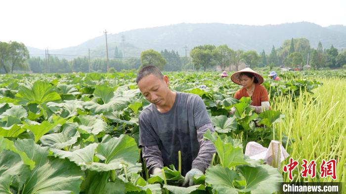 菜田里,十几位农户正弯腰劳作。山露每年有一个月左右的收割期,在此期间,每位参与收割的农户也能增收1万多元(人民币,下同)。