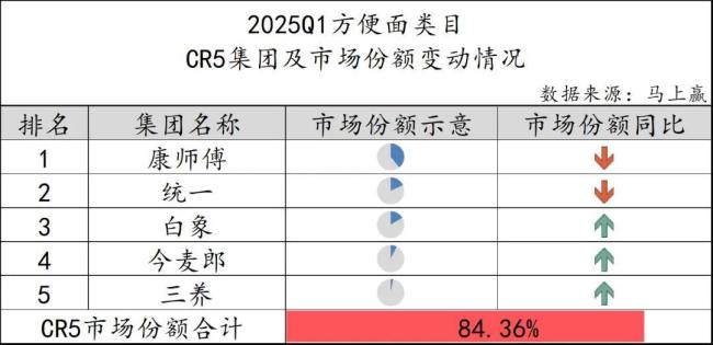 5月26日,马上赢公布了“2025Q1方便速食市场”大数据。其中,在方便面板块,白象的市场份额再次上升,正在“无限逼近”统一,大有取而代之的架势。