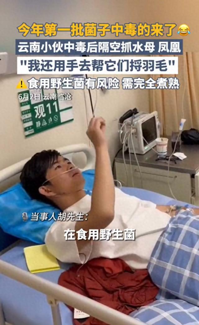云南第一波吃菌子的已经进医院了 中毒致幻案例频发。近日,云南临沧的胡先生因食用野生菌中毒致幻,躺在病床上隔空抓物。他称自己看到了凤凰、乌贼、水母、蜘蛛、螃蟹等幻象。