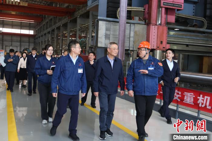 近日,民进中央主席蔡达峰率调研组赴河南省开展年度重点考察调研。图为调研组在中信重工机械股份有限公司考察调研。杨大勇 摄