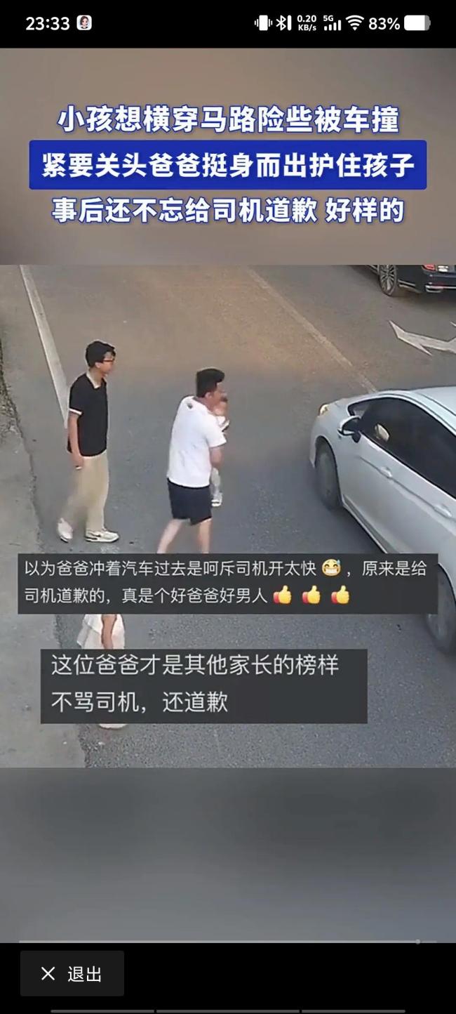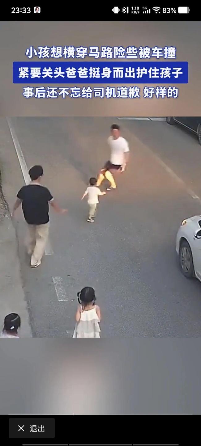 孩子误闯马路父亲飞身救娃。6月7日,广东广州,孩子误闯马路时一辆车经过,父亲本能飞身救起孩子并向司机道歉。