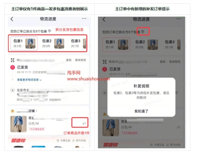 消费者发货信息示例和接入流程详情可见相关文档。此外,还有更多关于抖店包裹中心的产品升级信息及商家常见问答可供参考。快手小店也提供了拆单发货功能的操作指南。
