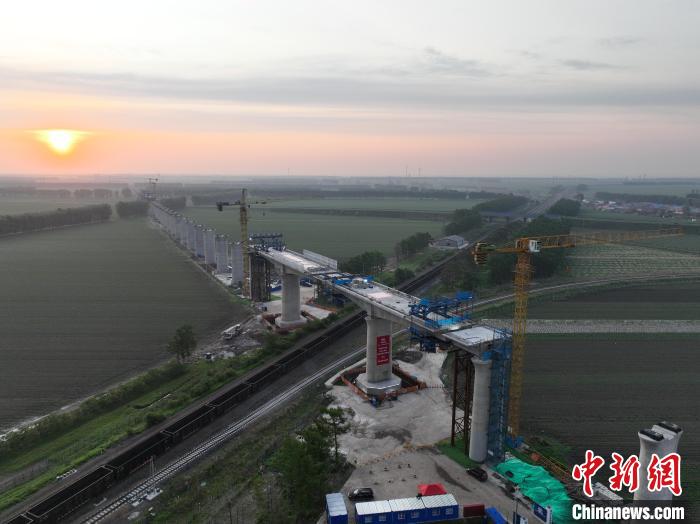 中新网哈尔滨6月12日电 (任达禹 孙振)12日0时30分,随着两座总重量近万吨的连续梁缓缓“转身”完成对接,标志着哈伊高铁哈尔滨至铁力段全线跨度最长、重量最大的转体桥——绥化南特大桥成功转体,有力推动全线建成通车进程。