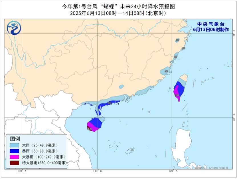 受其影响,昨日,海南岛东南部、广西中部、广东中西部等地出现达到暴雨,局地大暴雨;广东沿海等地出现8~9级大风,南海海域出现9~12级阵风。预计今天,广西南部、广东中南部、海南岛、福建东部、浙江东部、台湾岛等地部分地区有大到暴雨,其中,海南岛南部、台湾岛南部等地部分地区有大暴雨,局地特大暴雨(250~400毫米)。台风中心经过的北部湾及海南西部沿海有9~11级大风,阵风12~14级。