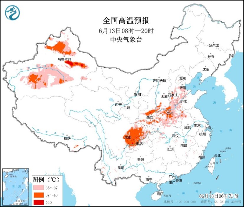 昨日,37℃以上的高温主要出现在四川、陕西等地,四川盆地已是连续第三天出现高温,全国范围内有33个国家级气象站最高气温突破6月极值,其中四川包揽了29个。