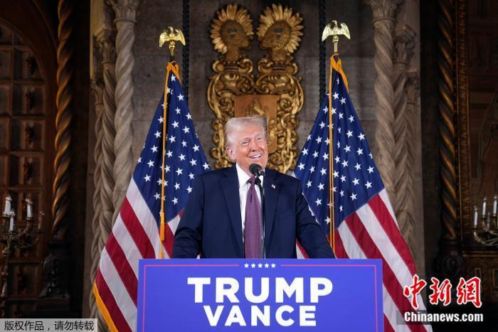 当地时间2025年1月7日,特朗普在海湖庄园举行新闻发布会。